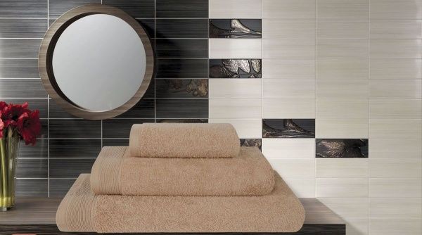 Особенность: Петля двойного кручения, высокая плотность ворса. Высота ворса 0,40 см.  Узкие края полотенца имеют уплотненную структуру махры, а также жаккардовую полосу шириной 3 см. На полотенце есть большая, удобная петелька для подвешивания на крючок.
