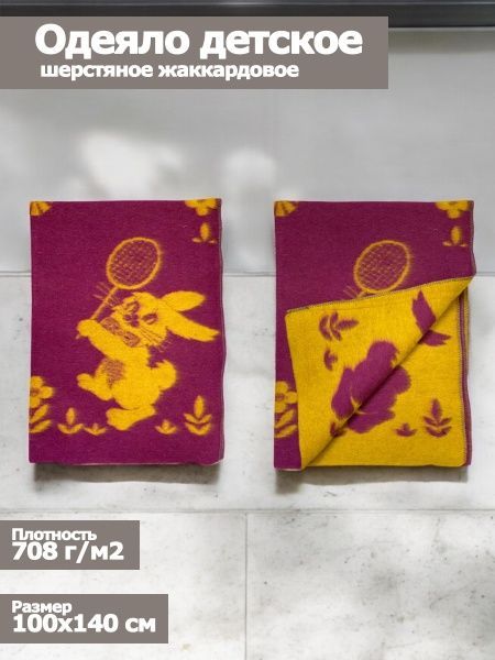 Одеяло детское шерстяное, 100х140, жаккардовое, "Зайка", цв. бордо-желт, пл. 708 г/м2, арт.С136