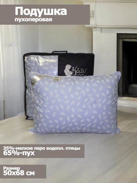 Подушка пух/перо "Примула" 50х68, (65%-пух/35%-мелкое перо водопл. птицы), чехол импорт, ТМ "КАТО"